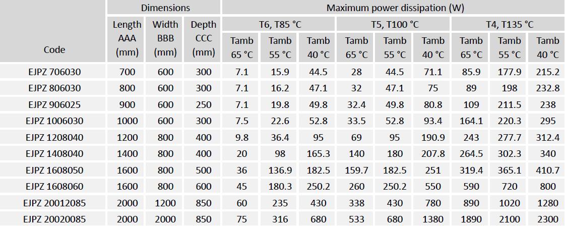 The enclosures may also be manufactured to intermediate sizes. This assumes that any given dimension is notlarger than the respective dimension of the largest enclosure or smaller than the respective dimension of thesmallest enclosure. The power rating applied to a enclosures of intermediate size is that of the next smallestenclosure.