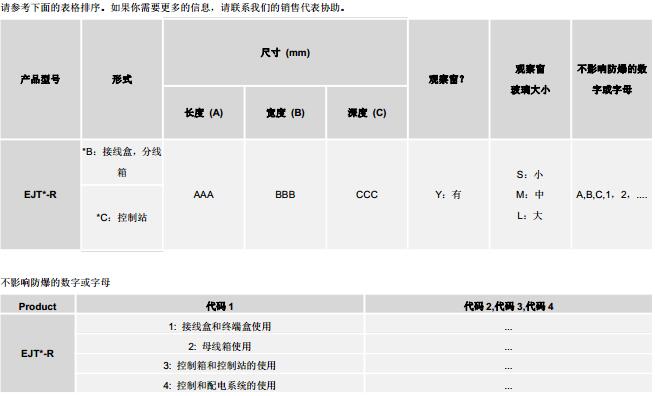 EJT*-R 系列防爆外殼是分為防爆接線盒和防爆控制站,是由玻璃纖維增強聚酯制造而成。系列是防塵防爆接線盒、配電柜、開關柜和控制單元組合的系列外殼,保護類型為“ tb”。