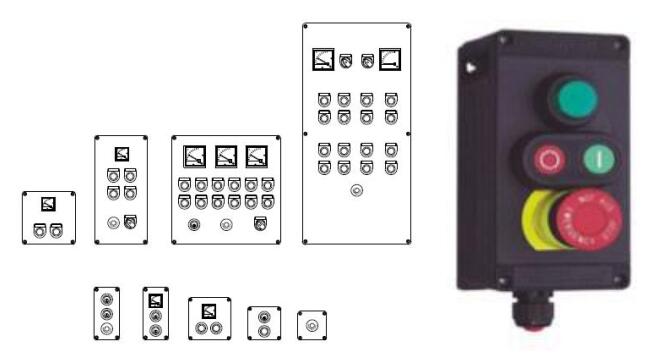 外殼和主開關模塊在以下材料:玻璃纖維增強聚酯、不銹鋼和聚酯粉末涂層鋼。模壓塑料外殼是阻燃劑,根據 UL 94 VO。所有模塊都是標準尺寸的,
