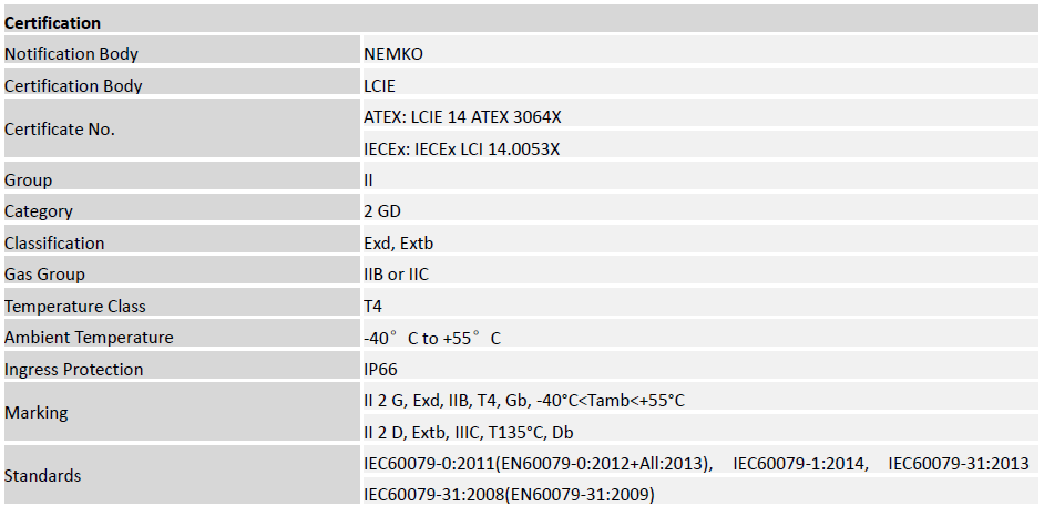 Electrical connection to be made acc. EN 60079-14 section 9 with cable cross section acc. to the rated current .