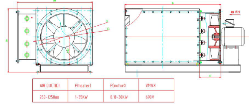 Air blower heater are used to heat dangerous gases. Examples include petrochemicals,chemicals and pharmaceuticals, crude oil and gas production, paints, storage, and a wide range of flammable and explosive materials.