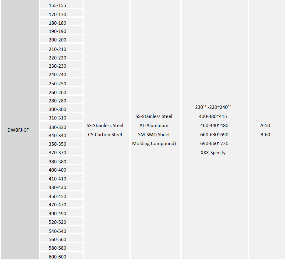 Please refer to the below table for ordering. If you need more information, please contact our sales representative for assistance.