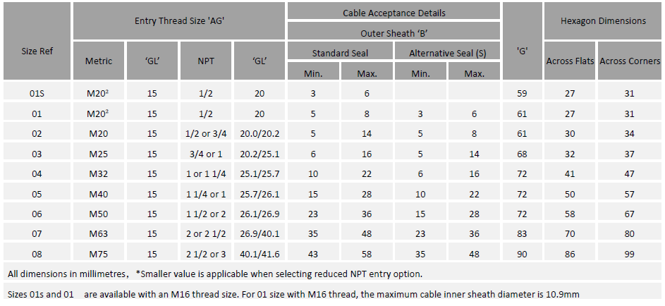 Sealing Area : Cable Outer Sheath - Single Compression.