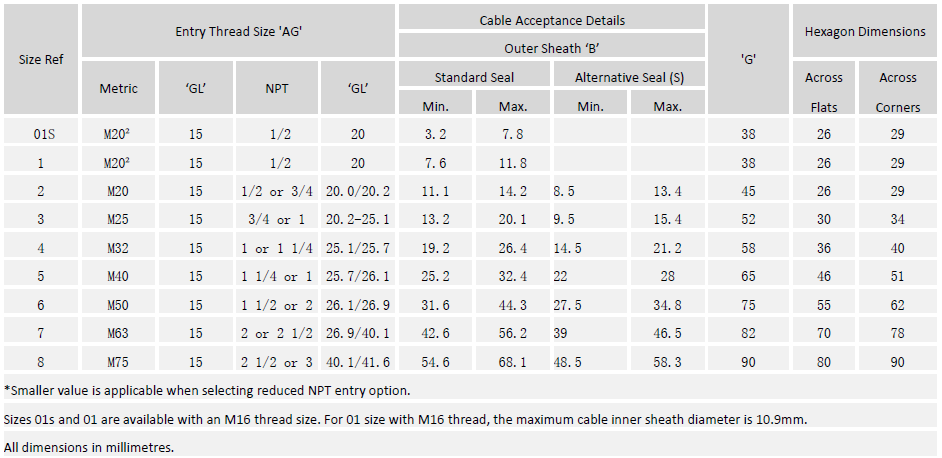 Sealing Area : Cable Outer Sheath - Single Compression.