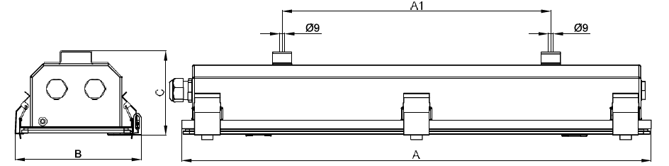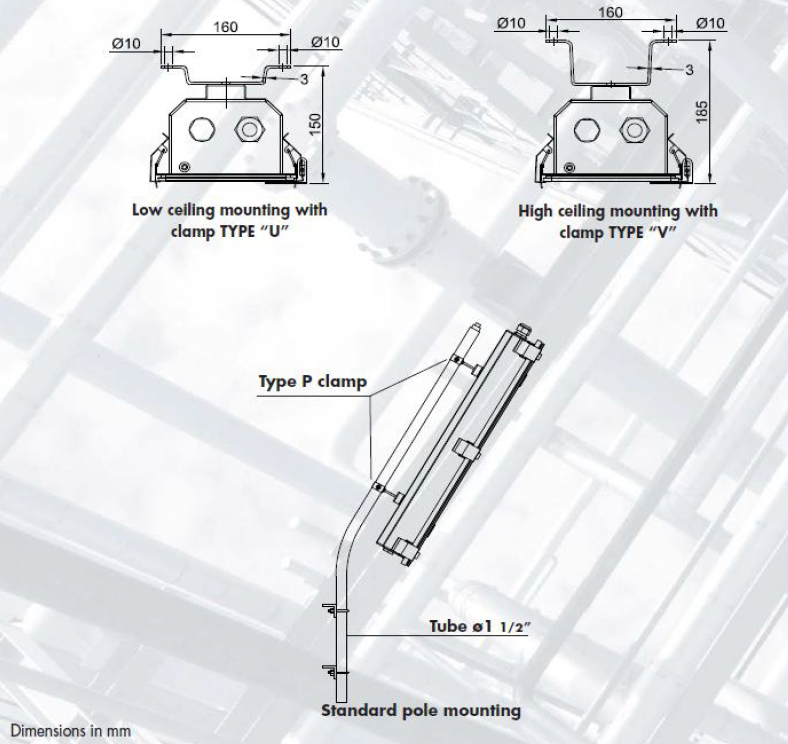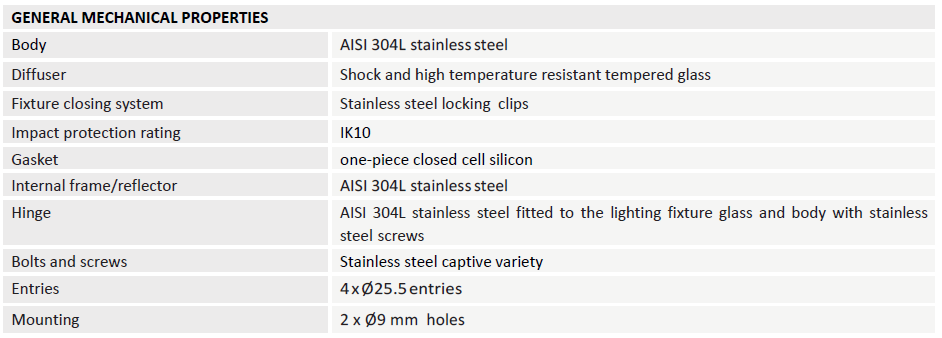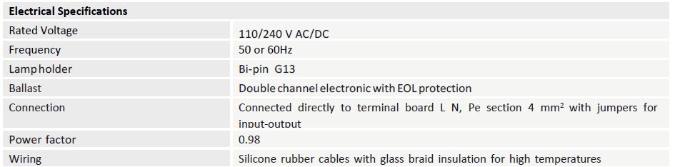 EVT-....S series increased safety lighting fixtures for bi-pin fluorescent tubes. Feature an IP66 platform with a stainless steel AISI 304L (AISI 316L on request) body and a tempered shock and high temperature resistant glass diffuser.
