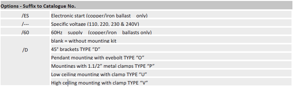 Please refer to the below table for ordering. If you need more information, please contact our sales representative for assistance.