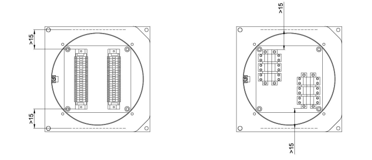 可根據(jù)客戶要求定制, 并始終符合證書(shū)使用的限制, 最大端子數(shù)量, 側(cè)面最大孔數(shù)量, 均滿足耗散功率和外殼機(jī)械強(qiáng)度要求。