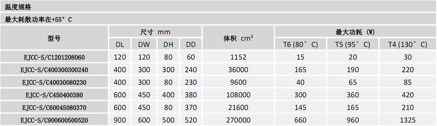 接線盒和控制站也可以制造到中等大小。這假定任何給定尺寸不大于最大外殼的各自尺寸,或小于最小外殼的各自尺寸。適用于中等大小的接線盒的額定功率是下一個(gè)最小外殼的額定功率。終端和部件可按指定的組合使用,但需計(jì)算最大耗散功率和認(rèn)證條件。每個(gè)外殼的最大耗散功率都在上面詳述。